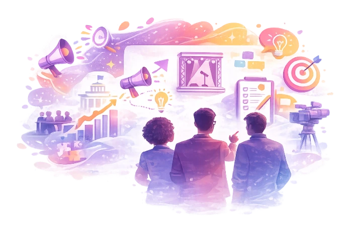Creamos y gestionamos eventos de pequeño, mediano y gran formato. Nuestro equipo se encarga de todo el proceso: preproducción, producción y posproducción, integrando componentes técnicos, logísticos y artísticos para garantizar experiencias memorables y de alta calidad.